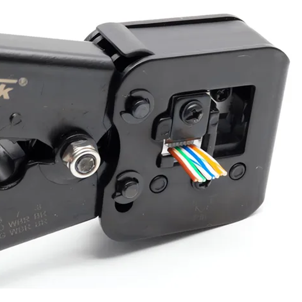 Ferramenta essencial para montagem de conectores de rede com precisão.