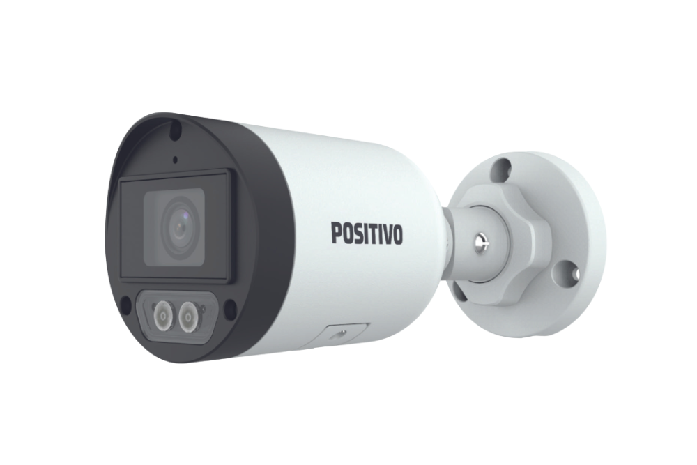 Câmera IP externa com corpo tubular e alta resistência.